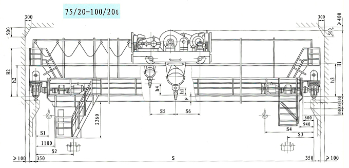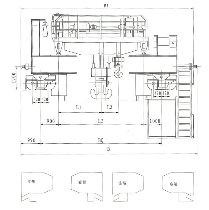 三、操縱室與走臺設有斜梯,方便操作及維修。增設了起重機供電維修平臺。