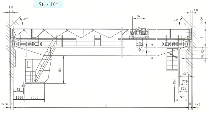 二、操縱室視野開闊,內社凸輪控制機構或聯(lián)動臺,操作靈活,工作舒適。還可根據(jù)要求加風扇,熱風器,冷風機、空調器、超負荷指示器、對講機等。