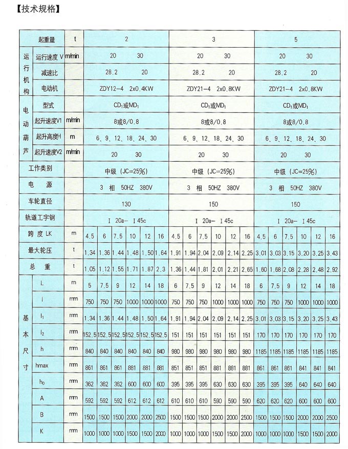 LX型電動單梁懸掛橋式起重機是按國家*新標(biāo)準(zhǔn)設(shè)計制造的,與CD、MD等型號的電動葫蘆配套使用,成為有軌運行的輕小型起重機,其適用起重量為0.5—5噸,適用跨度為3—16米,工作環(huán)境為-20℃~+40℃范圍內(nèi)。本產(chǎn)品為一般用途起重機,多用于機械制造裝配、倉庫、山洞等場所。 起重機主要有橋架(金屬結(jié)構(gòu))、電動葫蘆、運行機構(gòu)、電器設(shè)備等四部分組成。